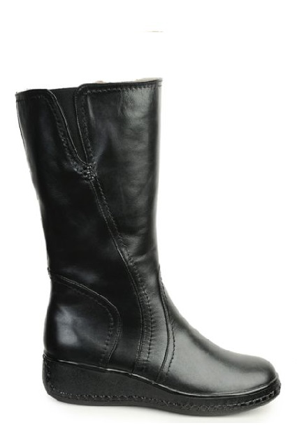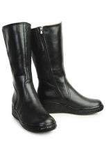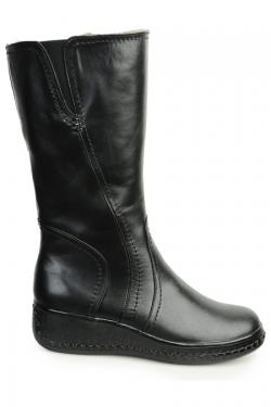 Классическая чёрная кожа, плавные формы - придают этой модели стиль. Качественные материалы, удобная колодка и резинки в верхней части сапог - гарантируют комфорт и удобство при эксплуатации.